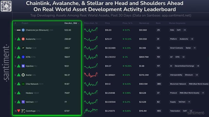 Santiment报告:Chainlink在去中心化预言机领域持续引领开发活动 摘要 分析公司 Santiment 表示,就开发活动而言,去中心化预言机网络 Chainlink (LINK) 继续在加密货币的现实世界资产 (RWA) 领域占据主导地位 。 币圈财经笔记报道: 根据分析公司 Santiment 的数据,去中心化预言机网络 Chainlink 在加密货币的现实世界资...