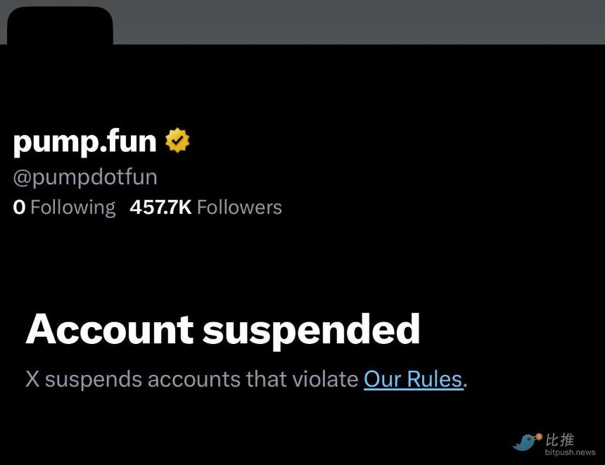 币圈「封号潮」升级:Pump.fun及联合创始人账号被X平台封禁 撰文:比推 北京时间6月17日凌晨,X(原Twitter)平台再次掀起大规模封号行动,热门Meme代币平台Pump.fun及其联合创始人Alon的官方账号遭到封禁。这是继6月12日大规模封号事件后的又一次升级。此次行动波及数十个加密领域关键意见领袖(KOL)和项目方账号,包括GMGN生态核心账号、B...