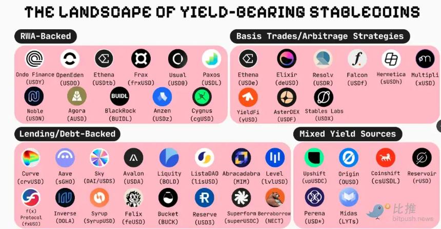 生息稳定币赛道全景解析:哪些项目真正实现「钱生钱」? 原文标题:Stablecoin Update May 2025 原文来源:Artemis 原文编译:比推 Bitpush 在加密市场中,稳定币的功能早已超越了简单的「价值储存」。如今,生息稳定币(Yield-Bearing Stablecoins)正成为投资者实现被动收益的重要工具。无论是通过美国国...