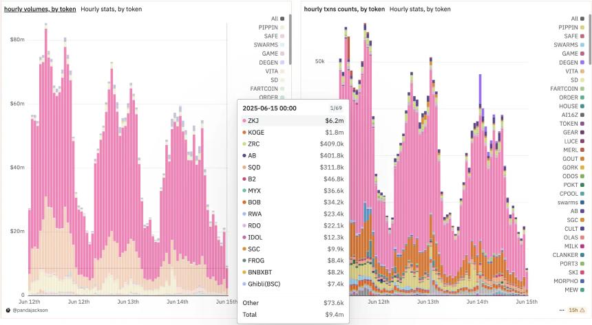币安Alpha刷分机制漏洞引发ZKJ与KOGE代币闪崩事件深度解析 Jessy,金色财经 6月15日晚,Binance Alpha站内交易量榜首的代币ZKJ与KOGE在半小时内暴跌超90%,引发了市场的广泛关注。此次事件背后涉及复杂的机制漏洞、人为操作以及市场结构问题。 由于这两个代币以极高的LP年化收益和极低的滑点磨损体验成为币安Alpha积分刷分的首选工具,但其...