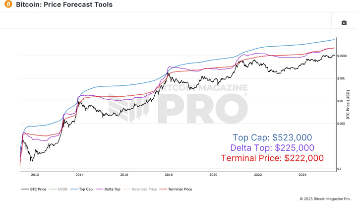 比特币本周期可能达到的顶点:27.3万美元或成潜在峰值 币圈网报道: 作者:Bitcoin Magazine Pro;编译:白话区块链 在比特币展现出前所未有的看涨势头之际,一个关键问题浮出水面:本市场周期中,比特币价格(BTC)究竟能涨到多高?本文将通过一系列链上估值模型和周期时机工具,探讨比特币可能的峰值目标。尽管预测永远无法完全替代基于数据的灵活反...
