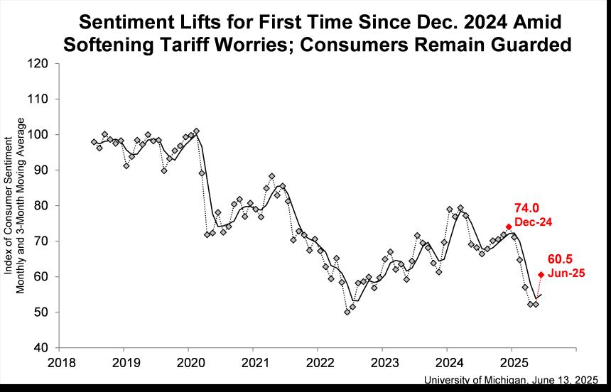 关税担忧缓解,美国消费者信心指数显著回升 币圈网报道: 密歇根大学的最新研究表明,美国人对经济现状及未来前景的看法已显著改善。今年6月,随着对经济的悲观情绪减弱,民众的信心大幅反弹。 这一转变发生于唐纳德·特朗普政府与中国之间的贸易紧张局势逐渐缓和之际。根据该大学6月的民意调查,消费者信心指数全面强劲反弹,逆转了年初以来的下滑趋势。 消费者...