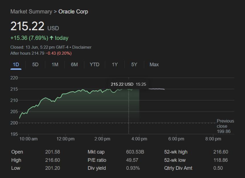 甲骨文股价飙升,创2001年以来最大涨幅 币圈网报道: 本周,甲骨文股价上涨约24%,创下自2001年4月以来的最大单周涨幅。强劲的盈利表现以及对云业务前景的高度乐观情绪推动了投资者信心的显著提升。 据报道,几乎所有的涨幅都出现在该公司发布季度财报后的两个交易日内。根据CNBC的分析,甲骨文上一次出现类似的周度暴涨可追溯至2001年4月互联...