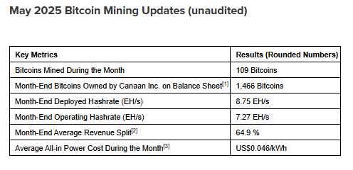 嘉楠耘智发布2025年5月比特币挖矿数据:月产量创新高,累计持有1,466枚比特币 币圈网报道: 嘉楠科技(纳斯达克股票代码:CAN),作为比特币挖矿领域的领先企业,今日公布了截至2025年5月31日的一个月比特币挖矿更新。数据显示,该公司在当月成功挖出109枚比特币,创下月度产量新纪录,同时其比特币总持仓量增至1,466枚。 嘉楠耘智董事长兼首席执行官张南耕表示:“尽管由于美国贸...