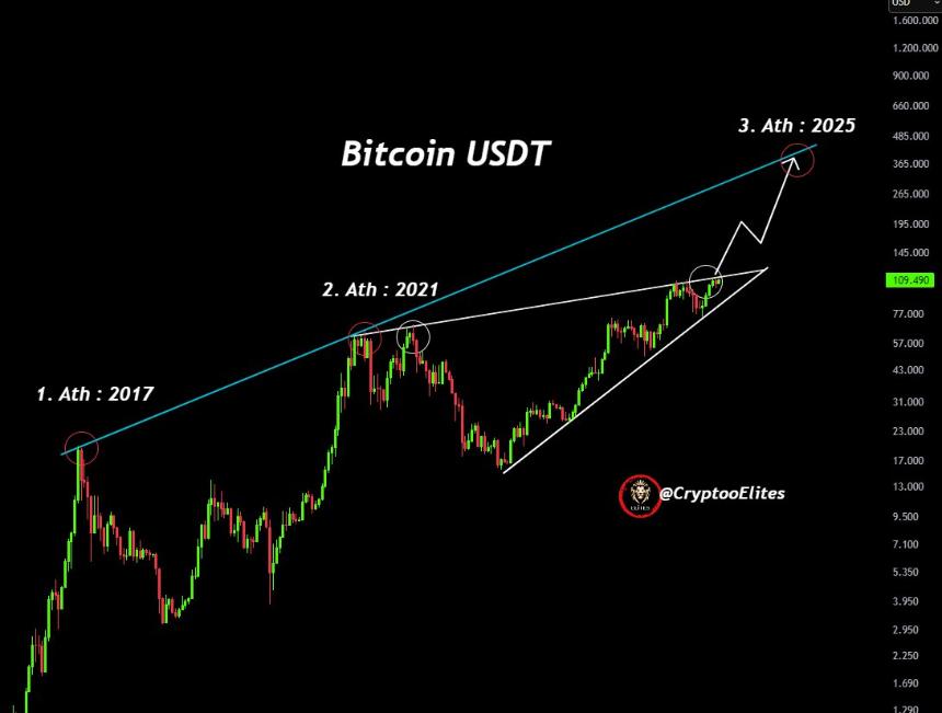 分析师预测比特币将在本周期达到36.5万美元的历史新高 币圈网报道: CryptoElites 利用比特币上升趋势线和历史价格走势来预测 BTC 何时会达到本周期的历史最高点。 近期,比特币价格在 6 月 6 日至 6 月 8 日期间大幅上涨,并于 6 月 9 日突破 105,000 美元大关。次日,这一加密货币的“长子”价格攀升至超过 110,000 ...