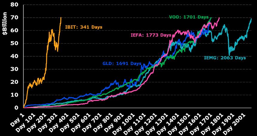 贝莱德比特币基金规模突破700亿美元,创史上最快增长纪录 币圈网报道: 分析师指出,贝莱德 (BlackRock) 推出的 iShares 比特币信托交易所交易基金 (ETF) 在规模突破700亿美元的速度上远超历史上的任何其他ETF。 彭博 ETF 专家 Eric Balchunas 在社交媒体平台发布的一篇文章中提到,IBIT 达到700亿美元规模仅用...