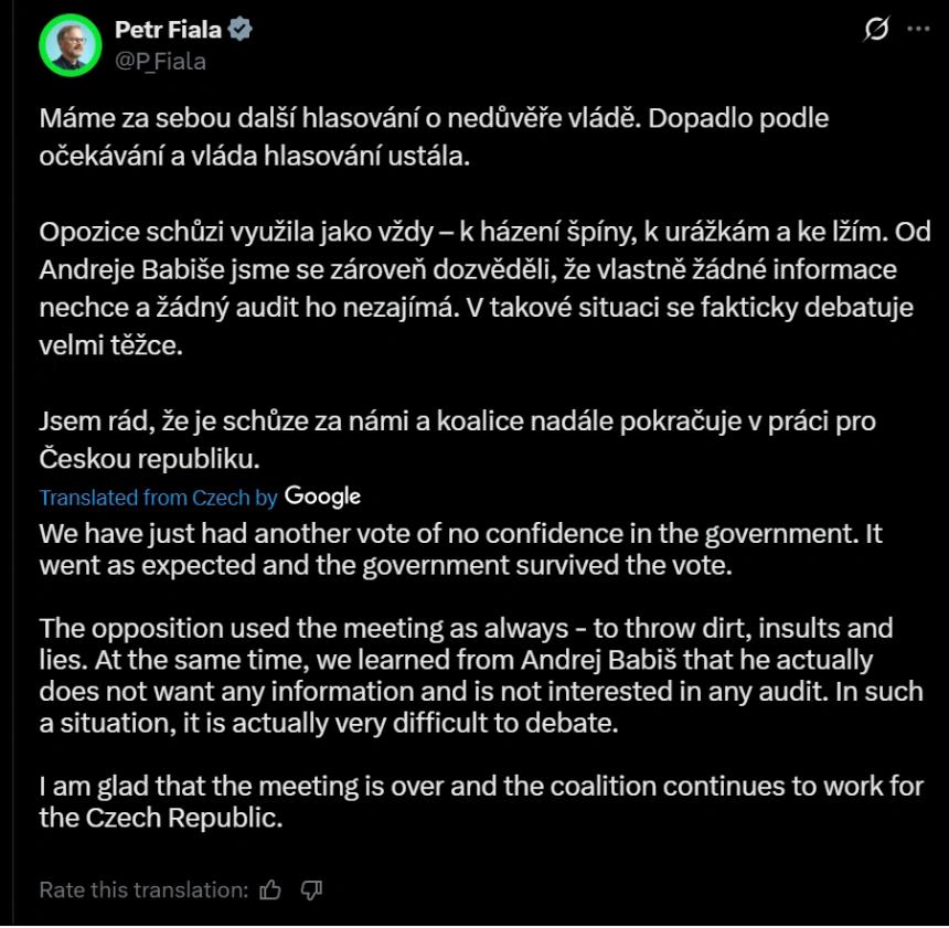 捷克政府挺过4500万美元比特币丑闻引发的不信任投票 币圈网报道: 捷克总理彼得·菲亚拉 (Petr Fiala) 领导的政府成功经受住了一场因巨额比特币丑闻而引发的不信任投票。这起丑闻涉及前司法部长接受了一笔价值4500万美元的比特币捐赠,为减少政治影响,菲亚拉宣布辞职。 尽管政府挺过了这次危机,反对派仍在今年秋季议会选举前几个月试图推翻现政府,并继...