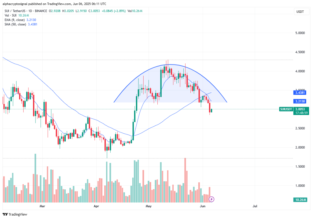 分析师警告:不要立即购买SUI - 这就是为什么 sui当前的价格走势似乎不太乐观,正如alpha crypto signal在x平台的加密分析页面中提到的那样。 加密专家Alpha Crypto Signal提醒大家,SUI的价格正呈现出一种圆顶形态,这是一种典型的看跌反转信号,预示着从上升趋势向下降趋势的转变。 通常,这种形态会在价格跌破支撑位...