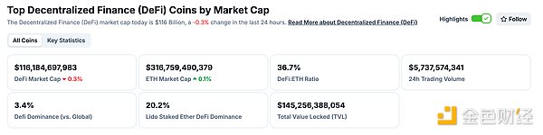 以太坊基金会发布新财政政策:聚焦可持续发展与DeFi生态建设 DeFi数据 1.DeFi代币总市值:1161.84亿美元 DeFi总市值 数据来源:coingecko 2.过去24小时去中心化交易所的交易量57.37亿美元 过去24小时去中心化交易所的交易量 数据来源:coingecko 3.DeFi中锁定资产:1117.01亿美元 DeFi项目锁定资产前十排...
