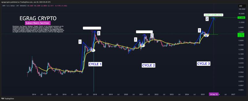 分析师预测:XRP或将进入11.5美元至42美元价格区间 币圈网报道: 市场分析师EGRAG Crypto提出了三个雄心勃勃的XRP价格目标,认为在XRP重新进入历史性的“白色圆圈”区域后,可能会出现显著上涨。 根据EGRAG的图表数据,“白色圆圈”区域历来是XRP流动性和价格上涨的关键支撑区。最新分析指出,这一结论是在XRP经历了一段时间的盘整之后得出的...