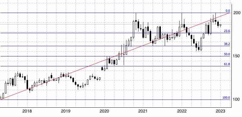 斐波那契和黄金分割率在金融市场中有着广泛的技术分析应用,长被用于外汇交易,股票交易,以及期货交易中。普遍的斐波那契指标包括斐波那契回撤、斐波那契趋势扩展、斐波那契通道、斐波那契圈等等。