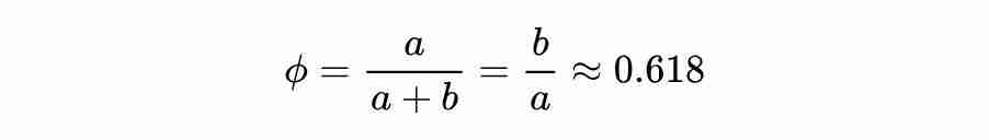 黄金分割率(Golden ratio),是数学界中一个非常重要的常数,通常以希腊字母φ(phi)来表示。黄金分割率的数学定义是当一个数列或形状分割为两部分,较大部分与整体的比例,等于较小部分与较大部分的比例时,这个比例被称为黄金分割率。