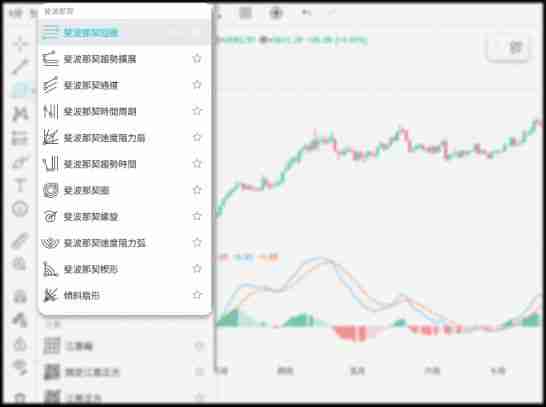 - 斐波那契速度阻力扇(Fibonacci speed resistance fan):用于显示趋势延续或回撤中的支撑和阻力。