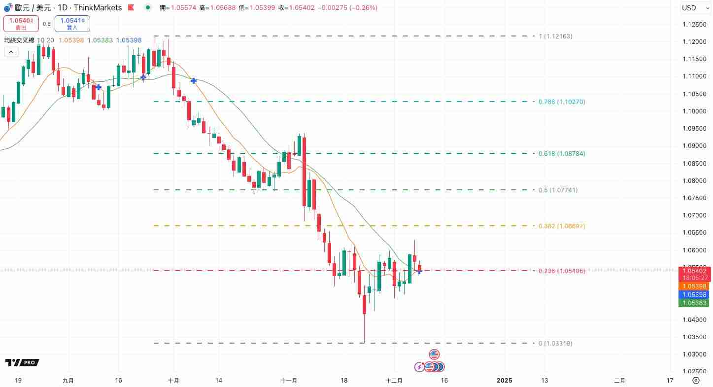 以上图为例,欧元兑美元在反弹至0.236上方后得到了明显的支撑,同时移动平均线(MA)出现了黄金交叉,表示了短期趋势有进一步反弹的迹象。此时交易员可以考虑做多欧元兑美元,并关注下一个0.382的阻力位。