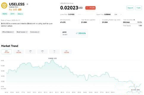 USELESS是什么币?USELESS代币经济学和分配 下面小编就为大家分享一篇USELESS是什么币?USELESS代币经济学和分配,具有很好的参考价值,希望对大家有所帮助。 USELESS是建立在Solana区块链上的一种迷因币,USELESS币被刻意设计为没有实用性、没有治理功能,也没有长期发展计划。与大多数提供诸如质押、流动性提供或与去中心化应用...