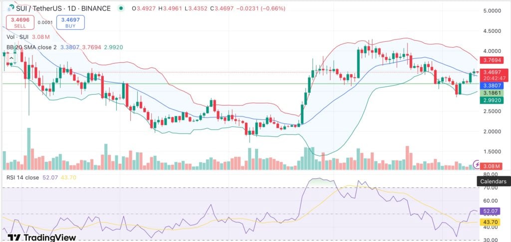 Sui蓄势待发:纳斯达克提交21Shares SUI ETF上市申请 下面小编就为大家分享一篇Sui蓄势待发:纳斯达克提交21Shares SUI ETF上市申请,具有很好的参考价值,希望对大家有所帮助。 Sui正从盘整中复苏,交易所交易基金相关进展为该项目注入了新动能。 截至发稿时,Sui(SUI)交易价格为3.46美元,过去24小时上涨2.1%,从6月6日当周低点...