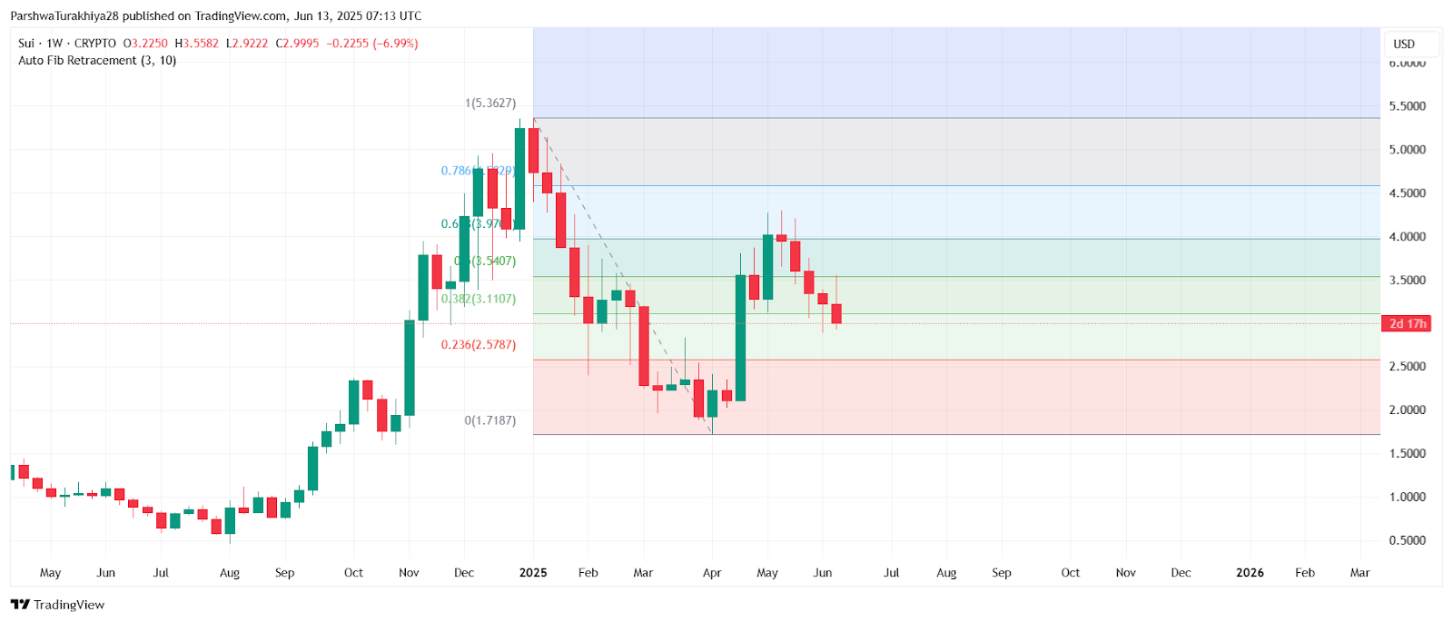 2025年6月14日SUI价格预测:跌破关键趋势线后加速下行 下面小编就为大家分享一篇2025年6月14日SUI价格预测:跌破关键趋势线后加速下行,具有很好的参考价值,希望对大家有所帮助。 进入六月中旬,SUI价格走势急剧转熊,最近在3.35美元附近的阻力位遭遇拒绝后,迅速跌破3美元关口。当前SUI价格交投于2.99美元附近,此前未能收复3.30美元阻力区——...