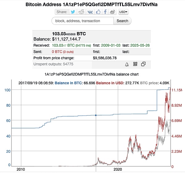 比特币浏览器上创世地址的余额变动