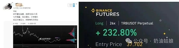 1) TRB:当天推荐价格为37.297美元,最高涨至42.28美元。TRB短期涨幅已接近EMA200,上方还有52美元左右的压力位。错过此轮上涨的投资者不妨静观其变,暂时不宜做空。