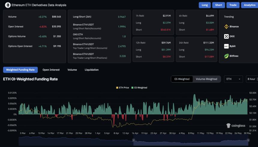 由于以太坊保持着突破的潜力,短期波动引发了衍生品市场看跌情绪的飙升。过去24小时内,以太坊的未平仓合约下跌了4.83%,至355.9亿美元。