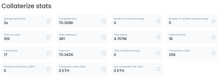 根据 Collaterize 的链上信息,在项目成立的四个月后该区块链的活跃度依然十分低,直到今日总交易 tx 才仅仅 7 万次,而总地址数也仅仅 381 个,如果仅对比这一数值,甚至不如一个数十万市值的 Meme coin 的持有人数。但无论如何,RWA 还存在一个相当漫长的发展期,背后 75 万亿美元的市场潜力虽然无限,但不管是法规、基础设施还是审查都存在十分大的不确定性。
