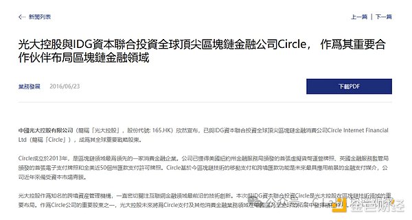 值得注意的是,光大控股早在2016年就参与了对Circle的投资。