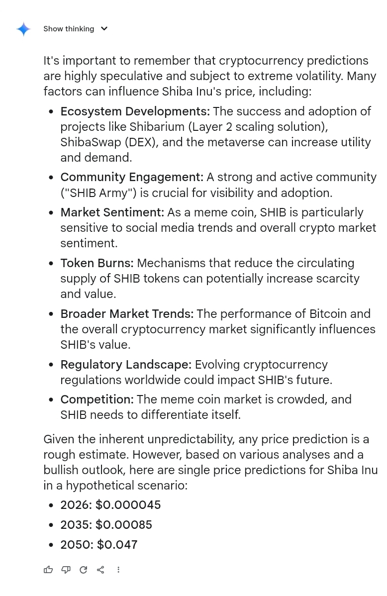 ChatGPT 和 Gemini 预测 2026 年、2035 年和 2040 年SHIB价格