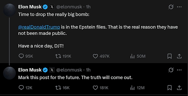 当天特朗普与马斯克之间的激烈争吵,成为市场唯一关注的焦点事件,该事件一直延续到美股收盘后仍在持续发酵。