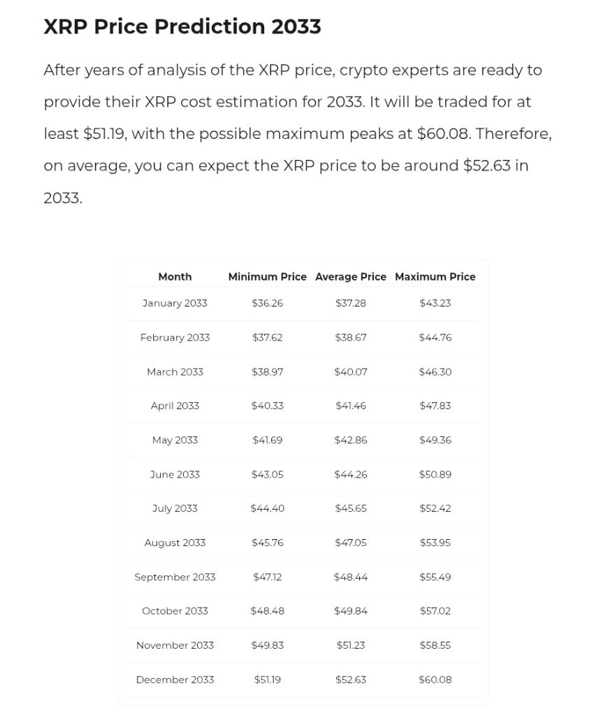 交易平台 Changelly 的预测也与此类似。Changelly 预计,XRP 的价格将在 2033 年 6 月达到 50 美元,峰值可能略高于这一水平。此外,Changelly 预测 XRP 将在 2034 年至 2040 年间达到 150 美元,并可能在 2040 年触及 250 美元。