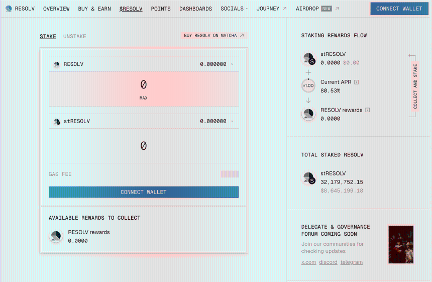 – Season 1 空投:符合条件用户(积分 ≥ 1000)可在 TGE(2025 年 5 月 15 日)后直接在官网领取 stRESOLV, 2 周冷却后可流动。