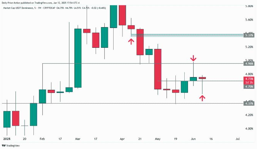 同时,截至撰写本文时,USDT.D 的比例为 4.79%。
