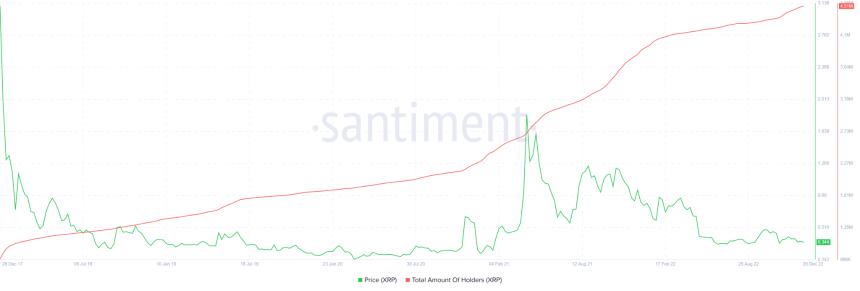 2018年1月至2022年12月期间,XRP新增持有者超过353万。讽刺的是,自2020年11月和12月SEC诉讼开始以来,增长速度显著加快,直到2022年5月Terra崩盘后才有所放缓。