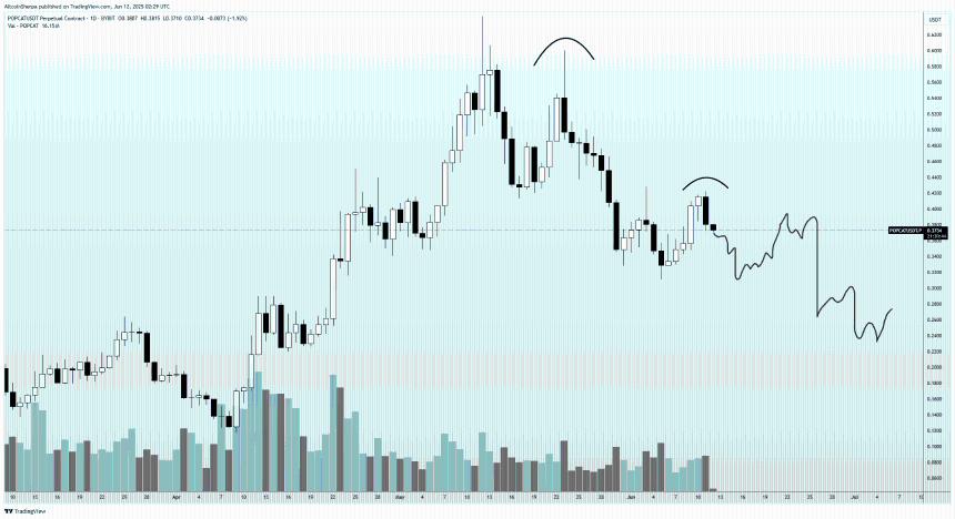 根据 Altcoin Sherpa 的分析图表,他预测 POPCAT 可能会跌至 0.22 美元。截至撰写本文时,POPCAT 的价格为 0.31 美元。