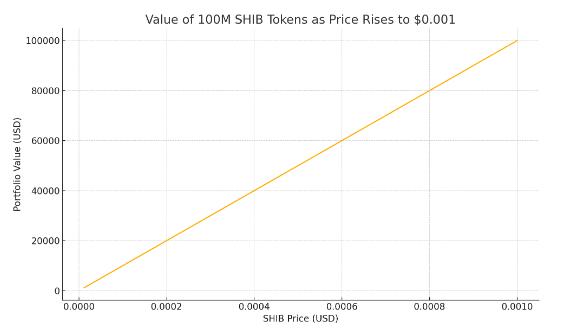 如果 SHIB 的价格上涨至 0.001 美元,持有 1 亿枚柴犬代币的投资组合可能带来显著收益。