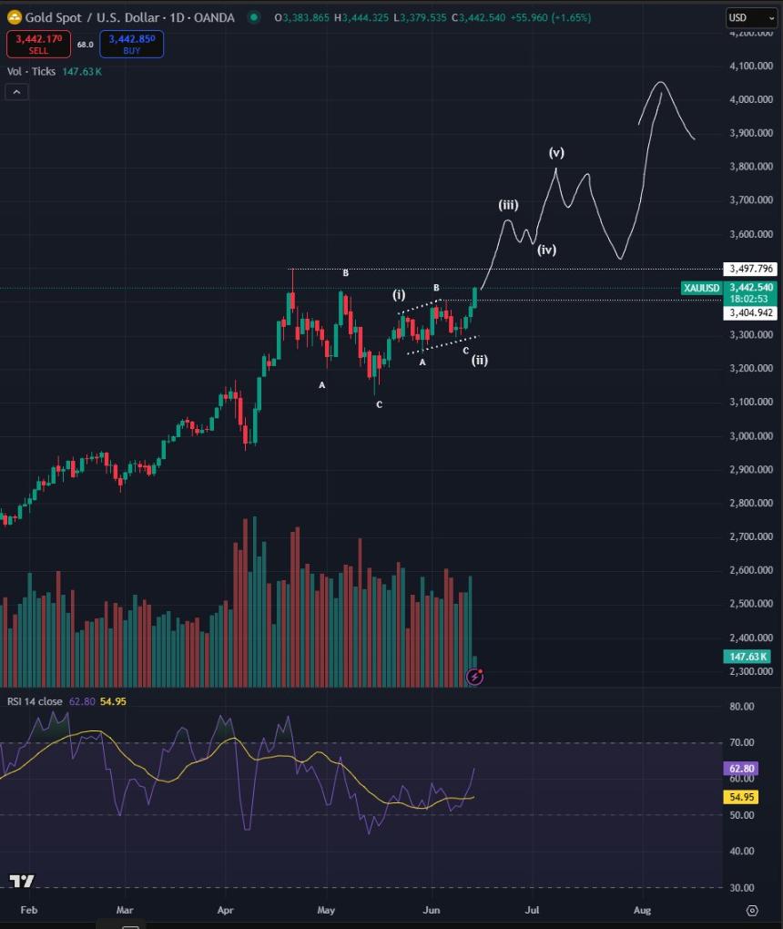 3,400 美元的关键阻力位已经被突破,并且很快将挑战历史高点。黄金价格依然维持看涨趋势,我认为几周内有望达到 3,800 美元。