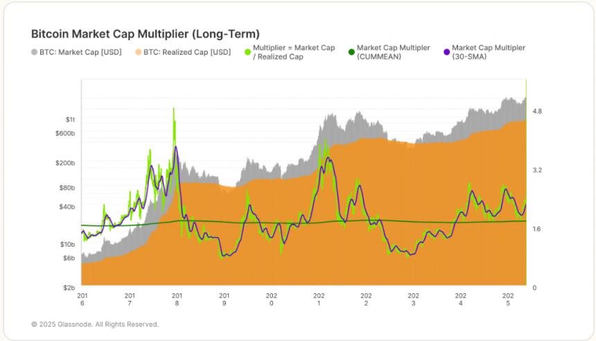 机构投资者持有比特币最有趣的地方在于其对市值的乘数效应,而这正是买家们兴奋不已的地方。投入加密货币的每一美元资金,短期内都能使比特币总市值增加高达 25 美元,而在整个周期内则能增加约 1.70 美元。这种反身性体现了机构投资者如何创造远远超出实际投入资本的放大市场反应。