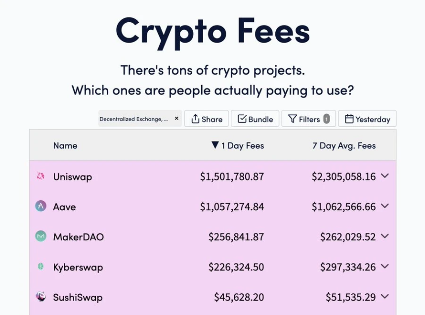 Crypto Fees数据显示,Uniswap 和 Aave 等老牌项目依然是最稳定的“现金流机器”。这也解释了为何它们能持续吸引注意力。用户愿意为价值买单,是最本质的正反馈。
