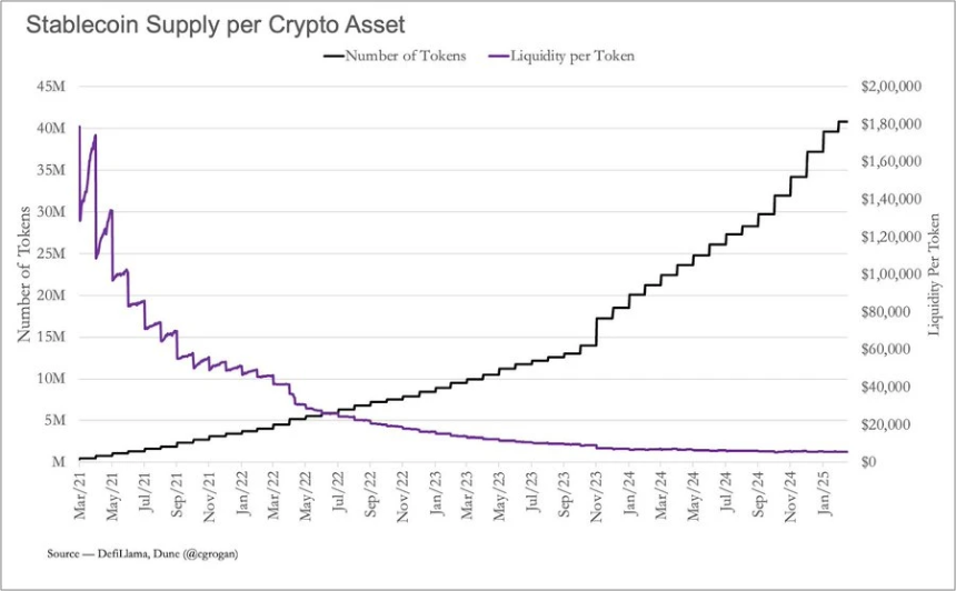 decentralised.co 数据显示,新上线的代币流动性正在持续下降,代币发行的速度远远超过市场新增资金的注入速度。