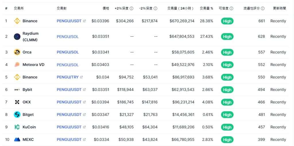 在开始购买之前,请确保您的平台支援PENGU。以下为当前上架PENGU 币的交易所榜单: