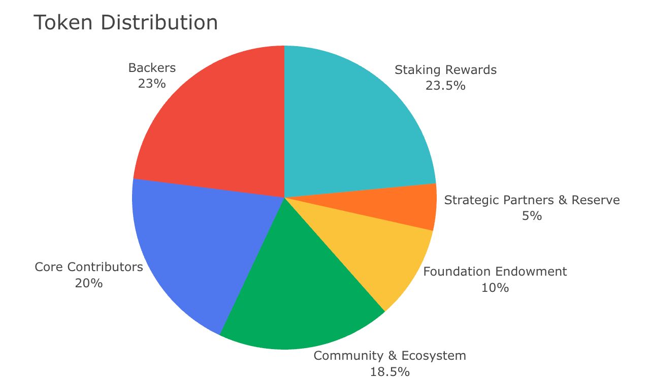 23.5% 质押奖励 (Staking Rewards):用于激励质押者和委托人,维护网路安全。23% 早期支持者 (Backers):用于早期投资人和支持者,以资助项目开发与扩展。20% 核心贡献者 (Core Contributors):分配给开发团队与技术贡献者,激励长期贡献者。18.5% 社群与生态系统 (Community & Ecosystem):用于推动社群建设、合作伙伴计划及生态系统发展。10% 基金会捐赠 (Foundation Endowment):保留给基金会,用于未来项目扩展、研究与发展。5% 策略合作伙伴与储备金 (Strategic Partners & Reserve):用于建立战略合作伙伴关系及项目发展储备资金。(来源:docs.oasis)