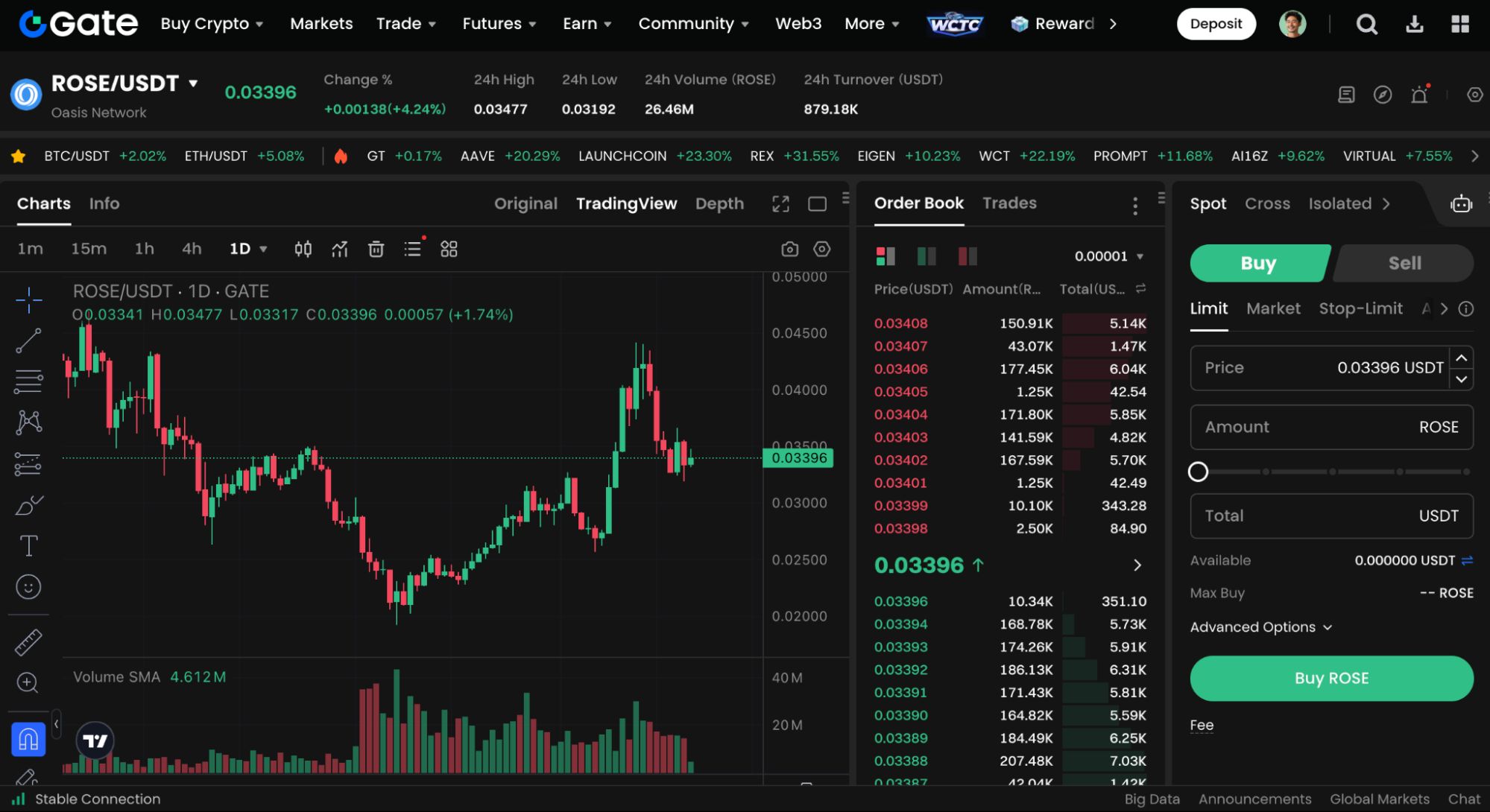 即刻开始进行 ROSE 现货交易:https://www.gate.io/trade/ROSE_USDT