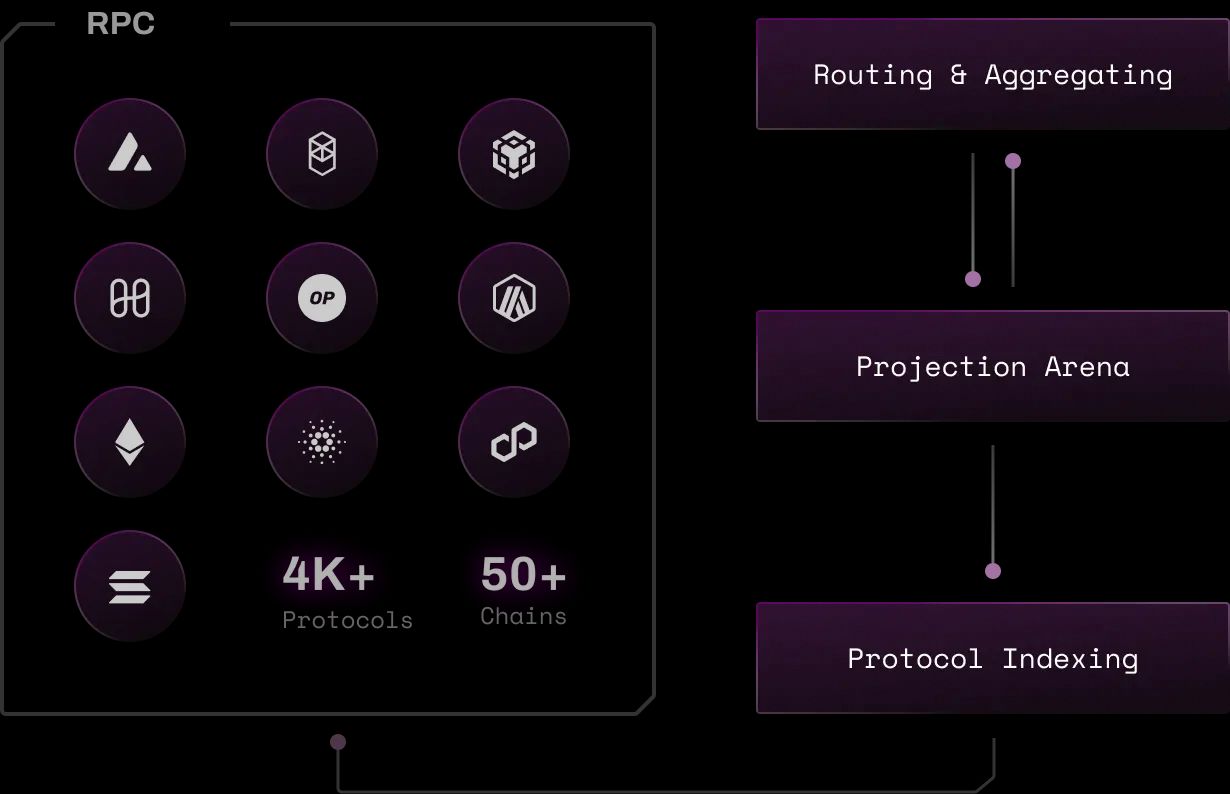数据源层(Data Sourcing Layer)是 Datai Network 的核心功能,负责对结构化数据进行索引。它包括去中心化的索引器层,在这里节点运营商运行索引器节点,开发可添加协议和 DApp 集成,支持无限扩展数据覆盖范围。