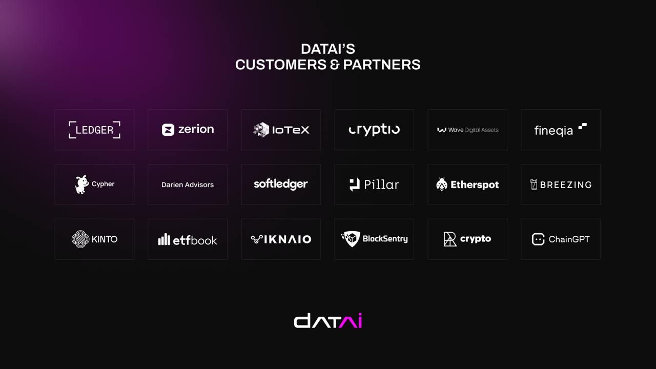 Datai Network 是一个去中心化的数据和分析平台。它收集区块链数据,并提供关于 DeFi、NFT、现实世界资产(RWA)、GameFi 等多个领域的深度洞察与分析。Datai Network 让用户能够即时访问全面的区块链数据,获得有价值的洞察,并从我们涵盖的多个区块链协议和领域中获利。Datai 平台已经获得诸如 Ledger、Zerion、Etherspot 等著名区块链公司的信任,这些公司都在使用 Datai 的数据。
