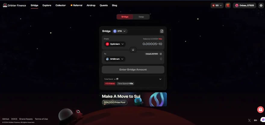 Orbiter Finance是一个去中心化的桥梁,它使用 ZK 技术来优化以太坊生态系统中第 2 层网络之间的互操作性。与依赖锁定和铸造机制的传统桥梁不同,Orbiter 可帮助用户在以太坊和数十个第 2 层网络之间快速、廉价且安全地转移原生资产。该项目专注于零知识(ZK)技术,旨在简化跨汇总资产转移体验,同时为多链未来构建基础设施。