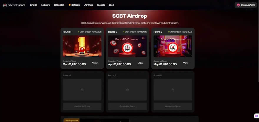 Orbiter Finance 使用O-Points机制为早期采用者和生态系统贡献者部署 OBT 代币空投: