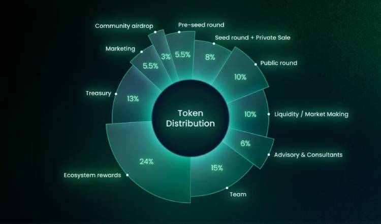 24%(240M代币)– 生态系统奖励:长期的激励措施以促进平台的增长和用户参与15%(150M代币)– 团队:分配给核心贡献者,具有15个月的悬崖和24个月的归属期13%(130M代币)– 国库:平台运营和战略发展资金10%(100M代币)– 公众轮次:通过Coinlist销售的社区参与10%(100M代币)– 流动性/市场造市:确保健康的交易流动性8%(80M代币)– 种子轮:早期投资者分配,具有6个月的悬崖6%(60M代币)– 顾问及咨询:提供战略指导和专业知识5.5%(55M代币)– 前种子轮:初始投资者支持,具有3个月的悬崖5.5%(55M代币)– 营销:社区增长和平台宣传3%(30M代币)– 空投第1季:直接送给社区参与者的奖励,归属期为12个月关键V2改进