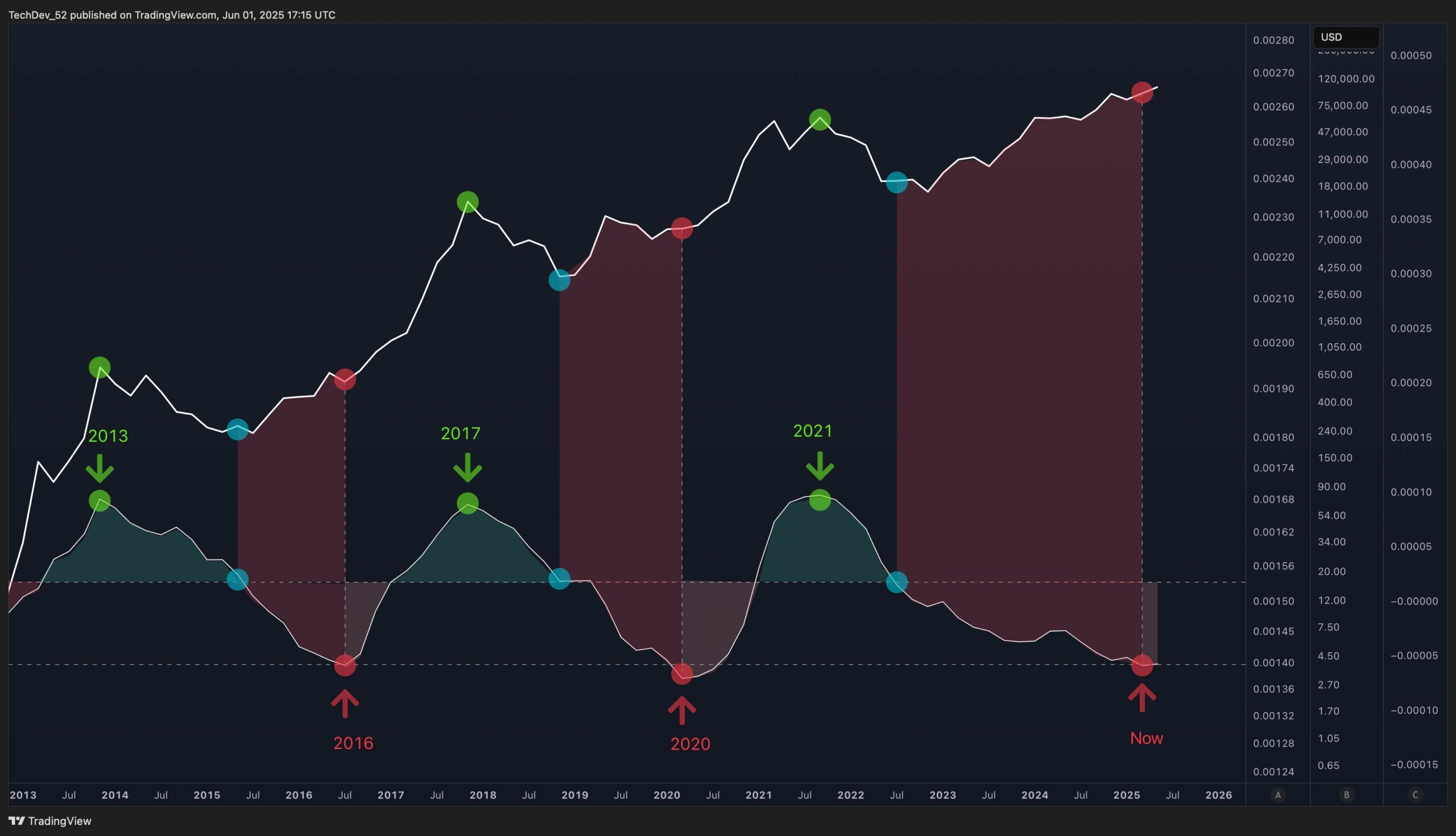 截至发稿时,宏观趋势还显示山寨币熊市可能即将结束,但牛市尚未启动。历史数据显示,2016和2020年市场均在重大牛市前触及低点。