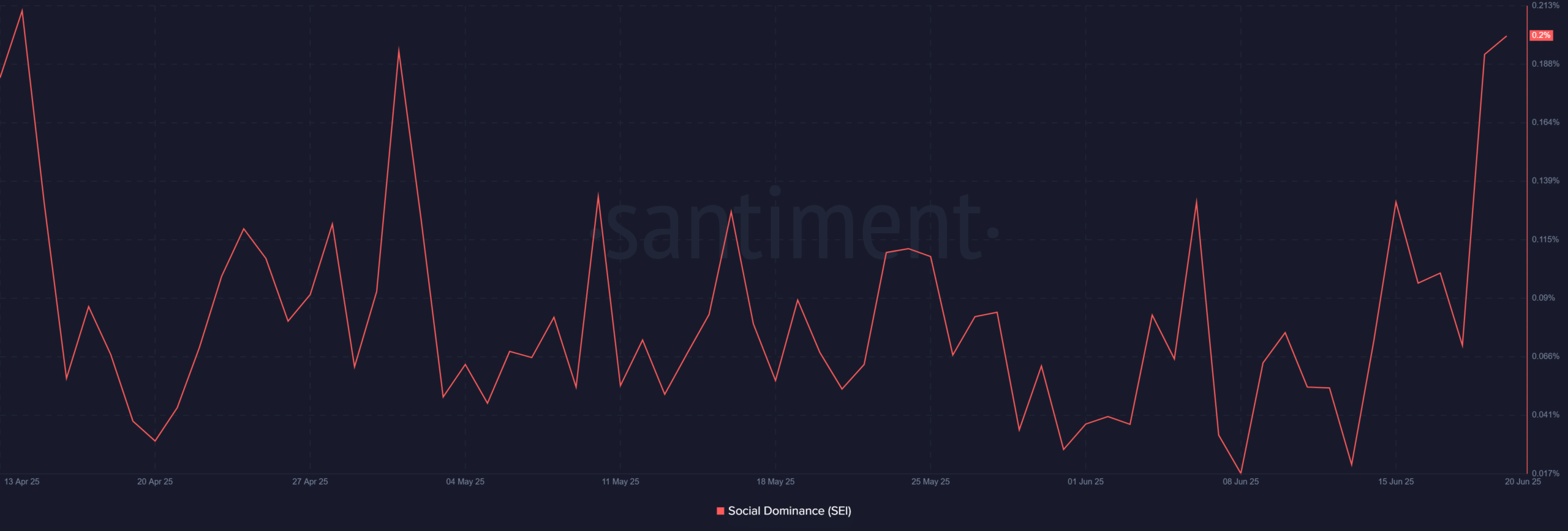 6月20日SEI的社交 dominance(话题支配率)达到0.26%,创下两个多月来最高纪录