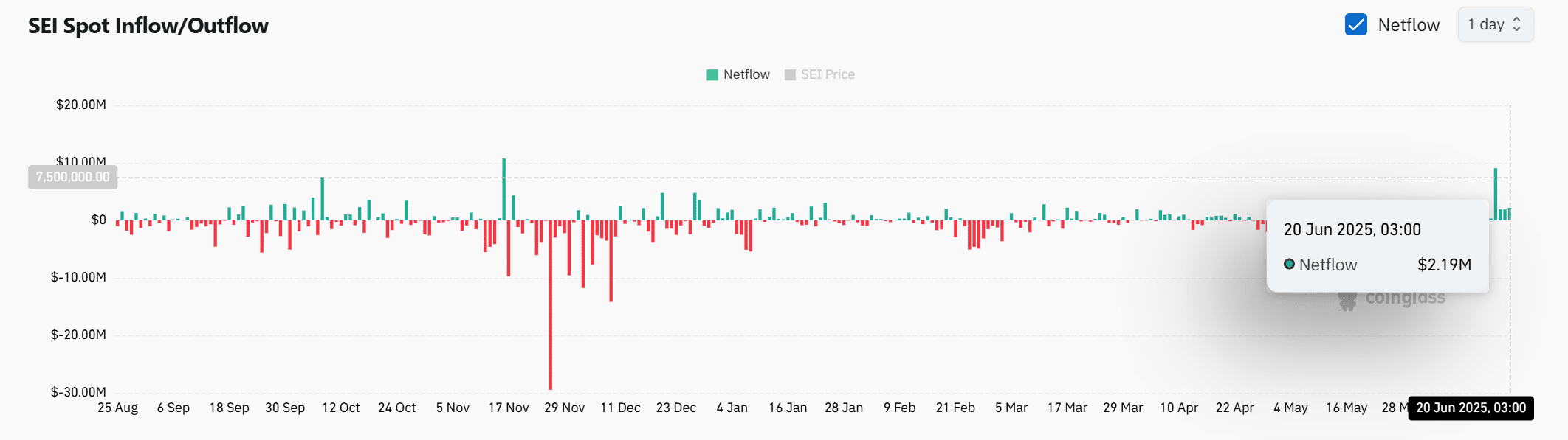截至发稿时SEI净现货流入达219万美元,创下近几周最强单日增幅。此前资金流向持续波动,此次流入可能标志着观望资金重新入场