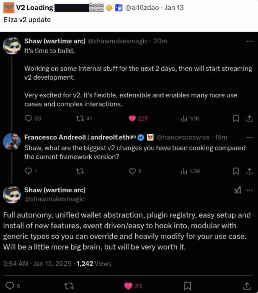 ElizaOS v2使AI能够完成v1版本无法实现的任务,例如:
